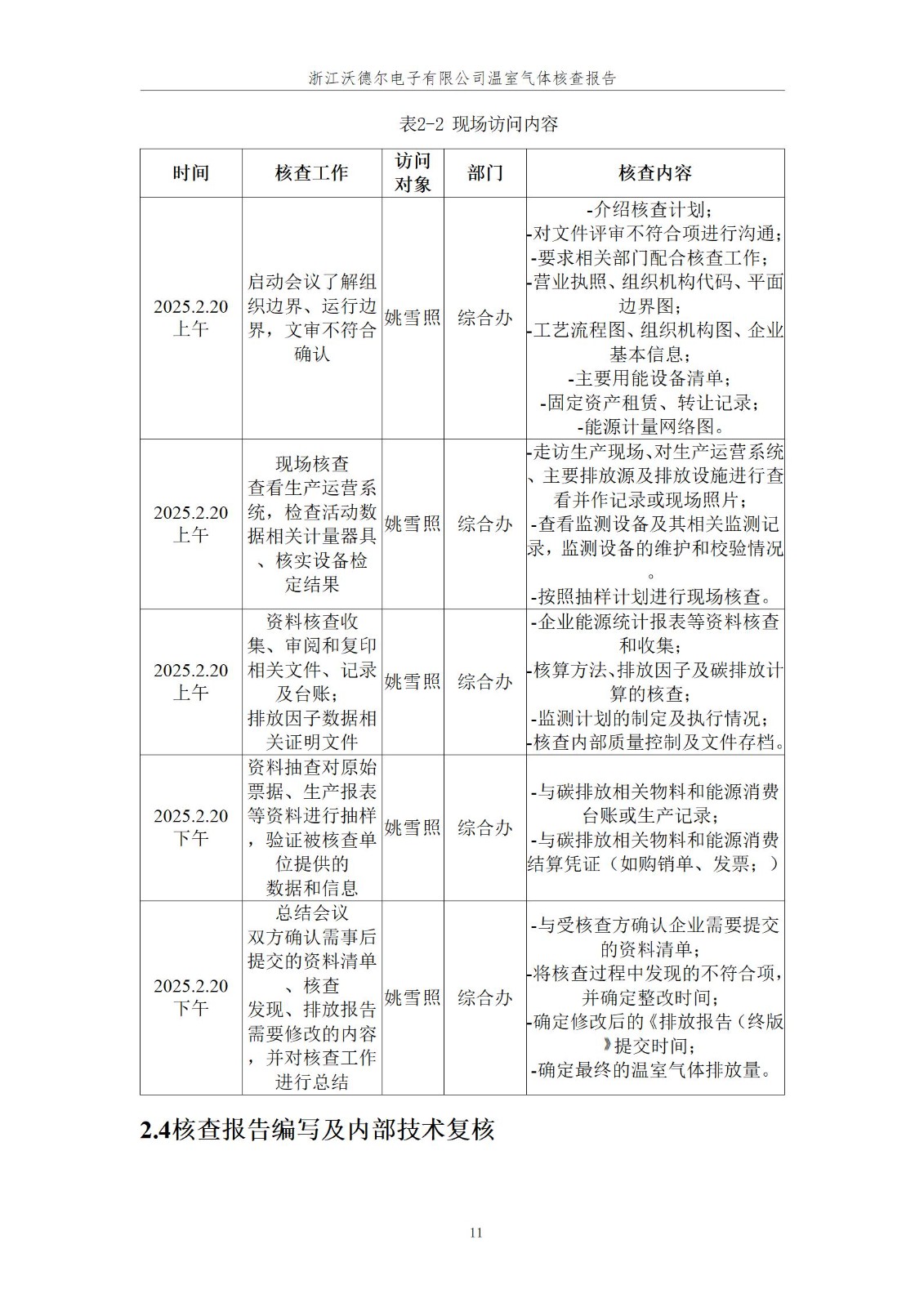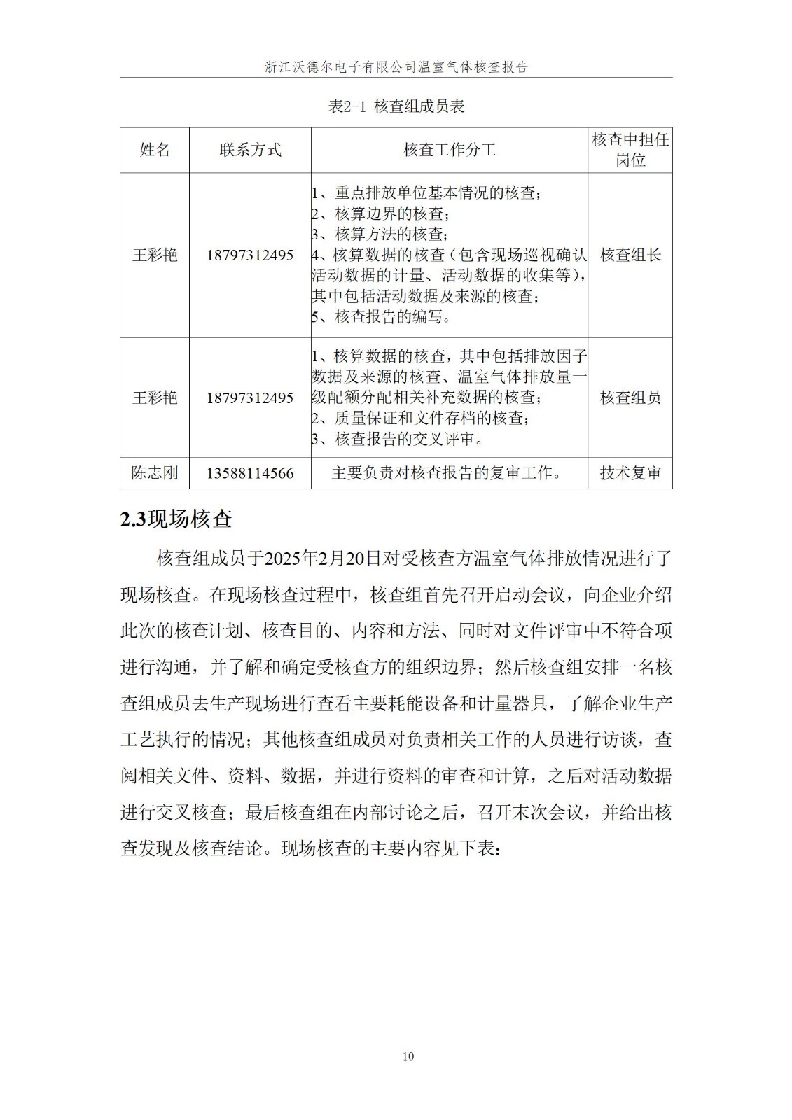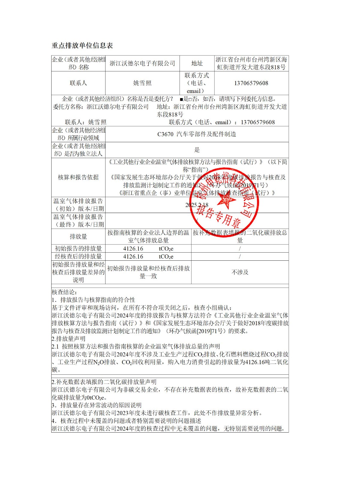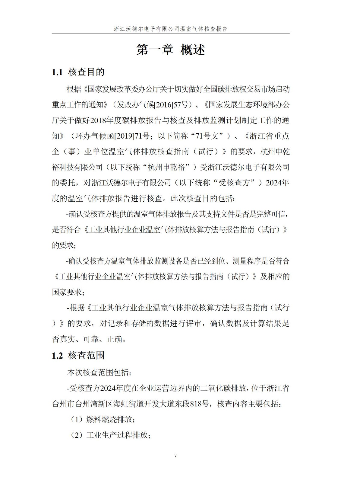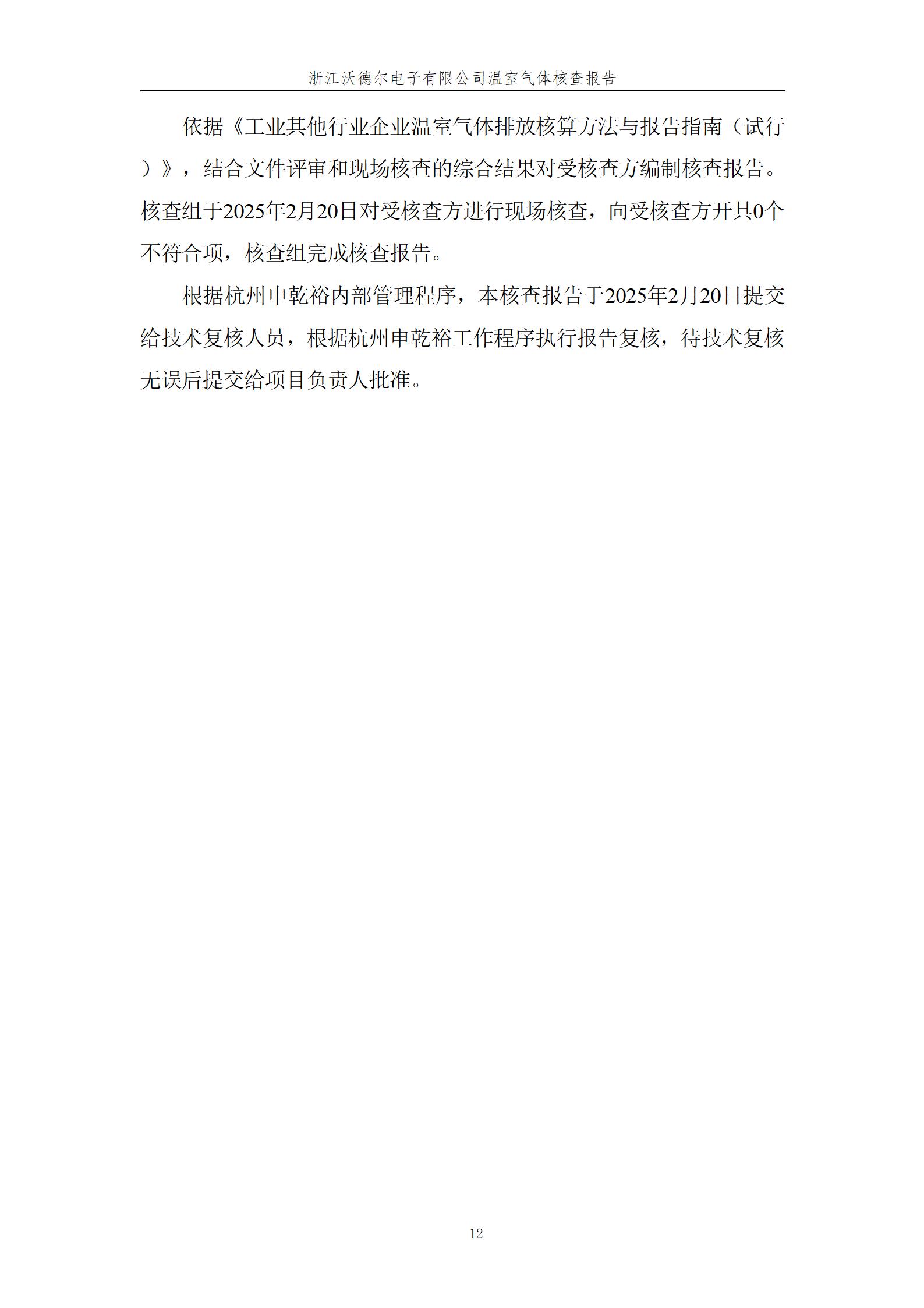2024年温室气体排放核查报告(浙江沃德尔电子有限公司)